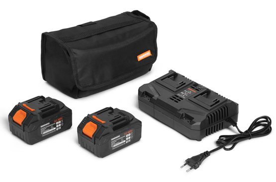 Комплектация SET включает два аккумулятора ёмкостью 21 В / 4 Ач и зарядное устройство. Для удобства хранения предусмотрена специальная сумка.