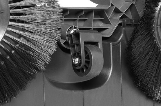Повышает маневренность подметальной машины, облегчая управление и обеспечивая легкость поворота даже в ограниченном пространстве, что значительно упрощает процесс уборки и повышает эффективность работы.